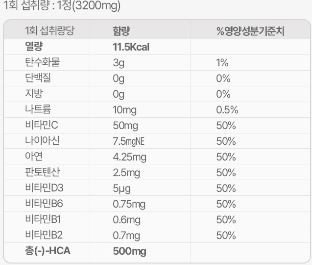 - 체지방 감소: 당연히 가르시니아 성분이 들어가 있기 때문에 체지방 감소에 도움이 될 수 있습니다.